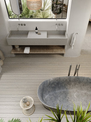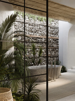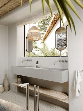 Discover one of our latest projects: a serene, sunlit en-suite bathroom that blends minimalism with bohemian. Minimalist bohemian style is all about finding the perfect balance. The simpleness of clean lines merged with the warmth of raw, natural textures that makes the space feels curated yet effortless, refined yet soulful.