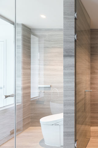 Guided by a careful restructuring of the existing apartment, 817designspace and architect Lim Kyu Beom reimagined the bathroom through light, proportion, and material restraint. White surfaces, oak wood, and flowing grey marble create a calm and balanced interior, shaped for everyday comfort.