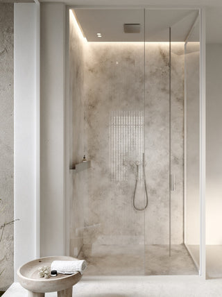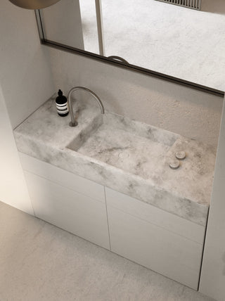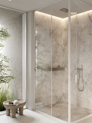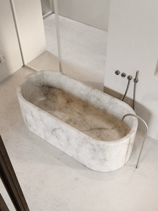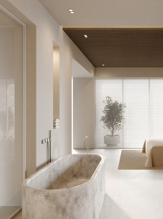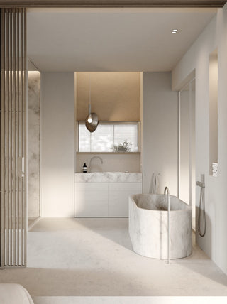 White marble has for long been synonymous with elegance and timeless appeal. In one of our recent projects, white marble takes the centre stage in the form of a bath, a matching basin, and shower walls.