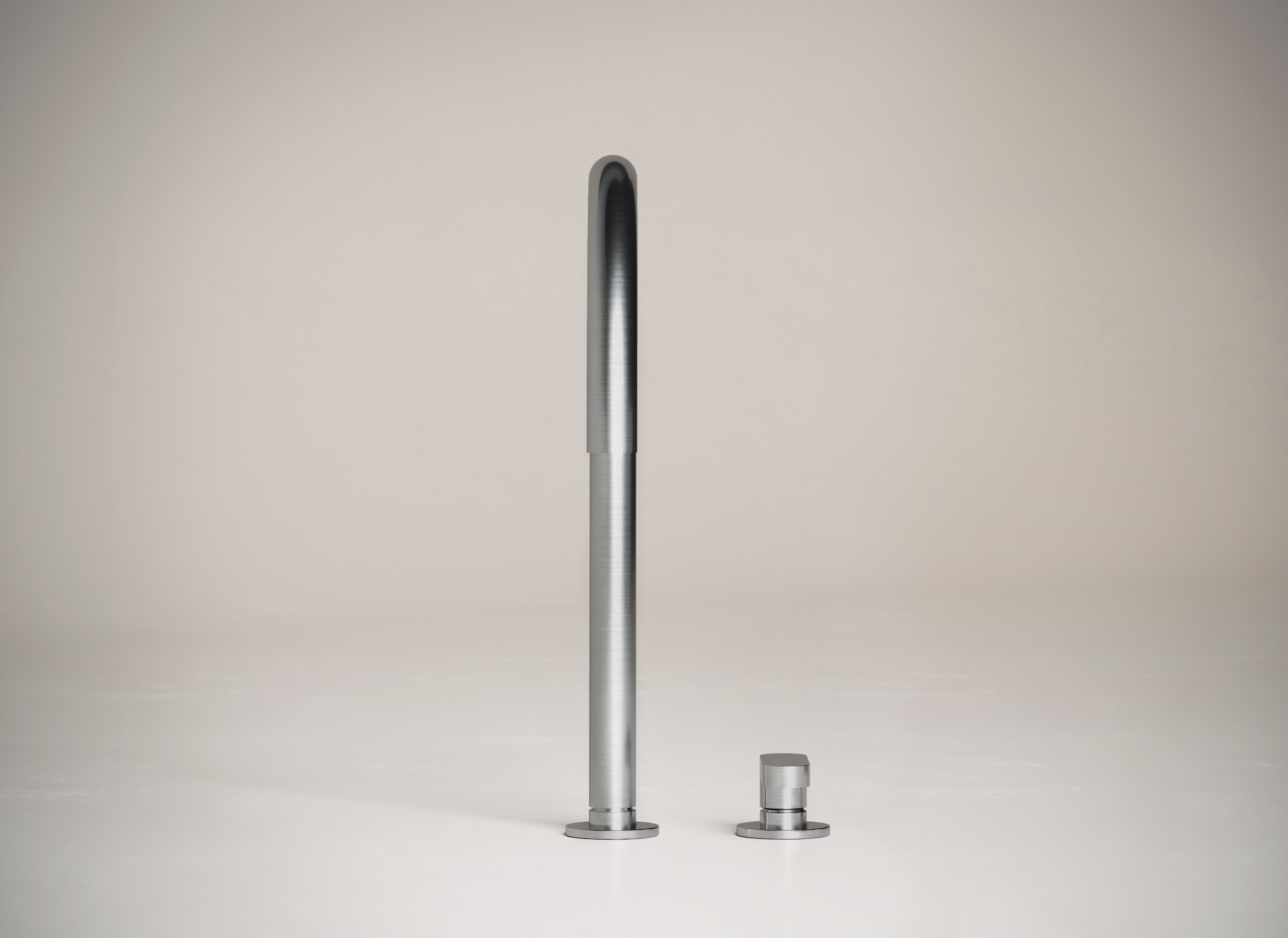 Deck mounted mixer with swivel spout, projection spout 212mm. All crafted from AISI 316L stainless steel and is available in Brushed Inox, Dark Grey and Brushed Gold finishes.