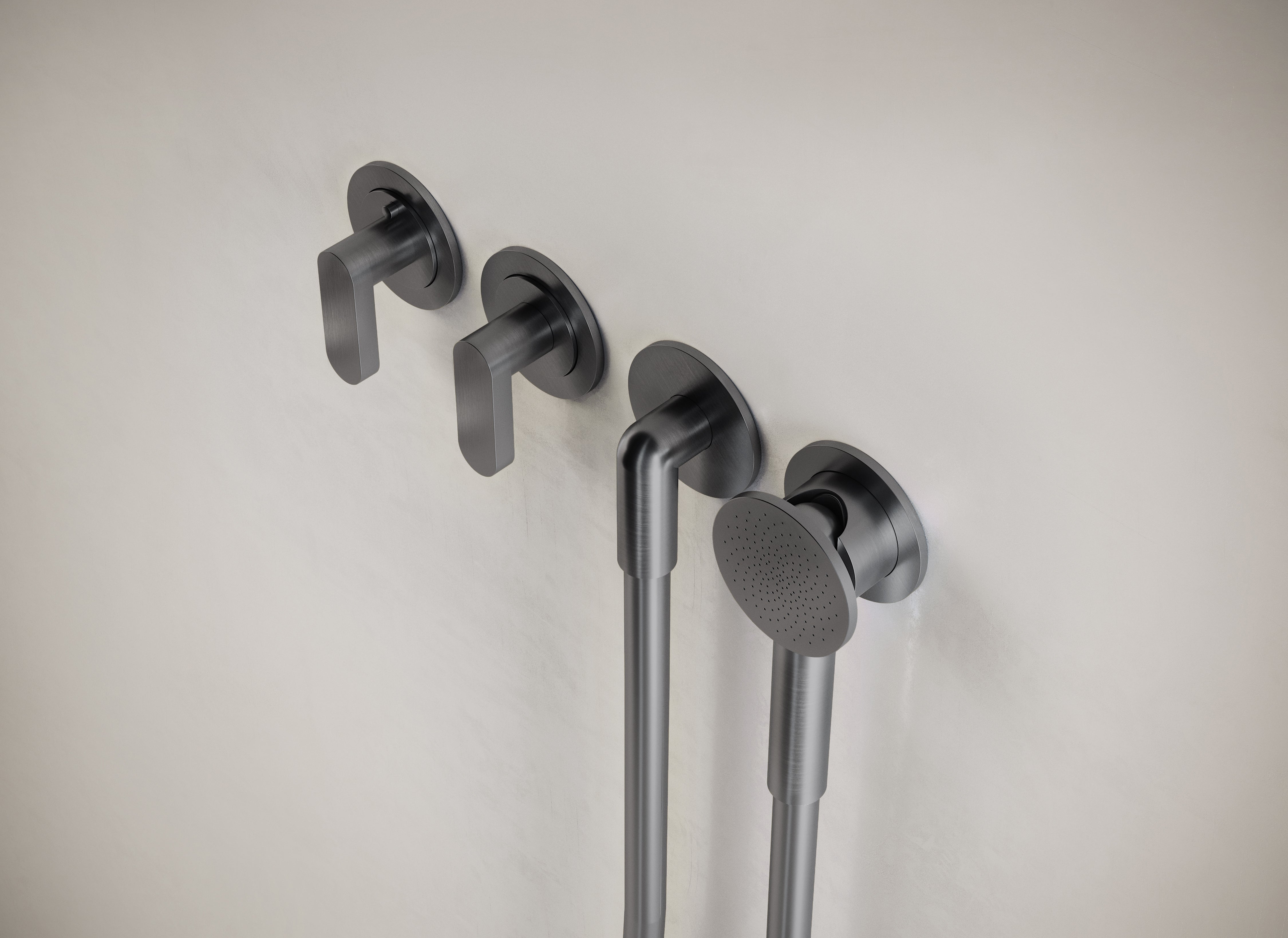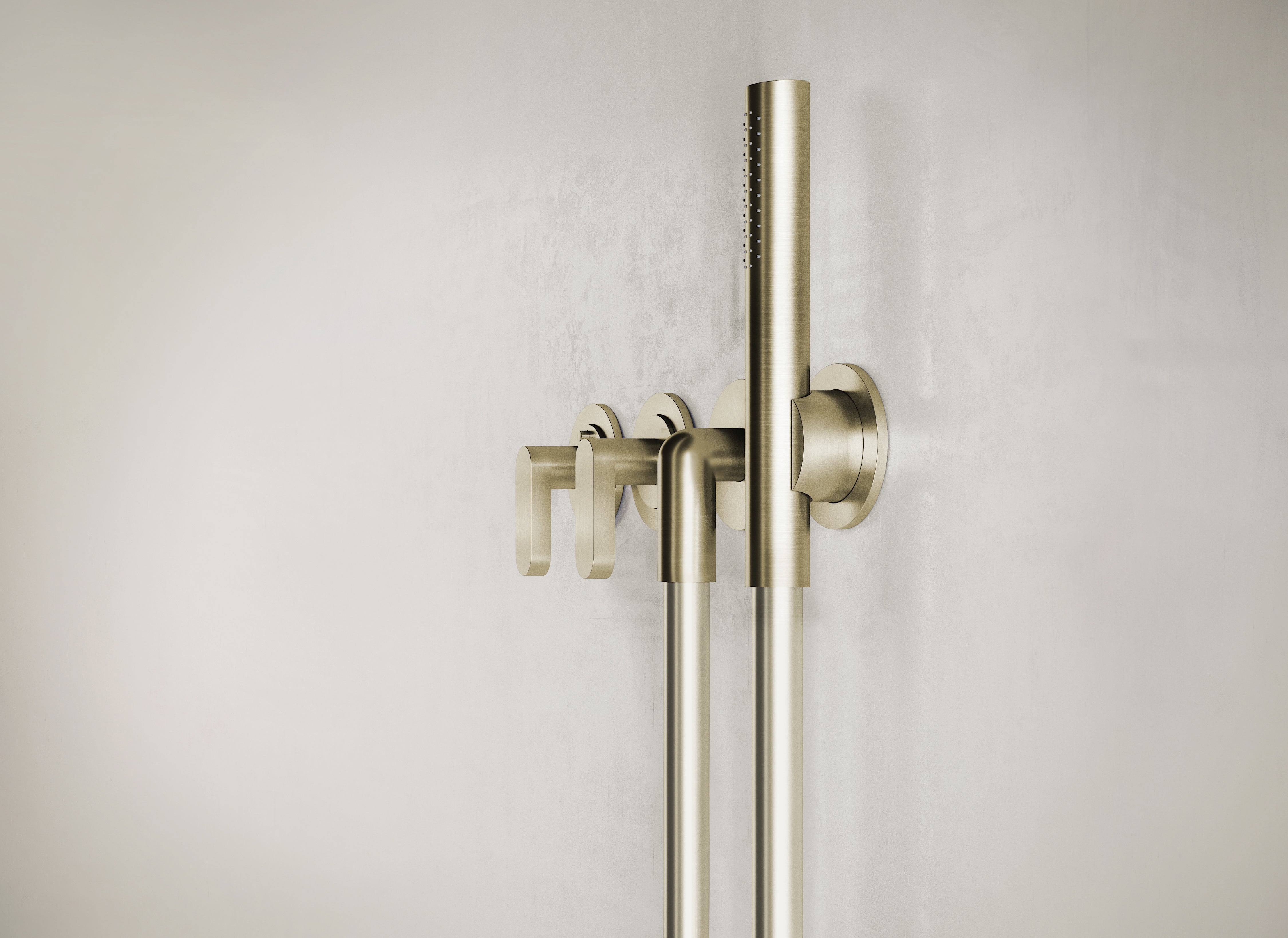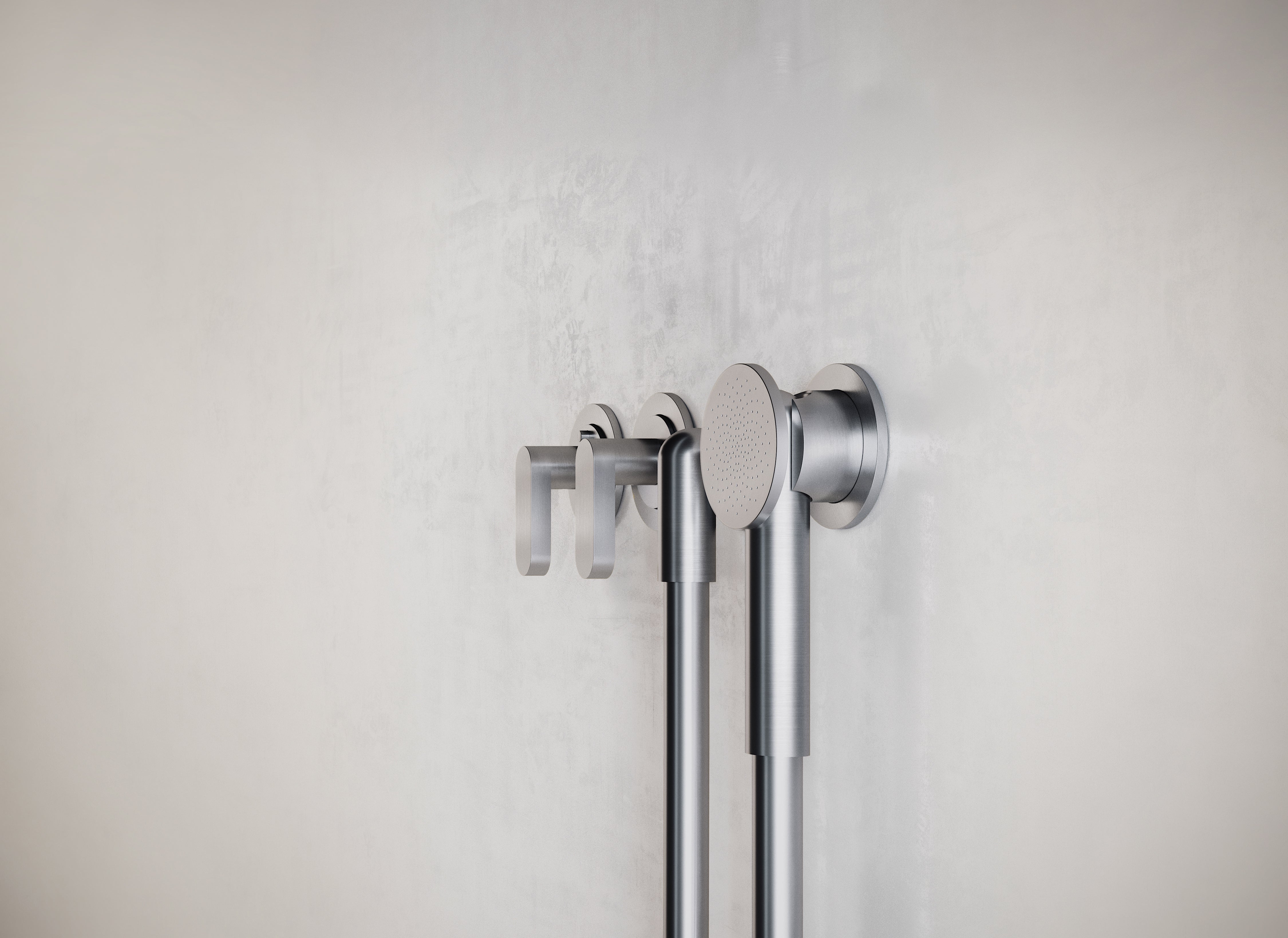 This thermostatic hand shower set features a thermostatic mixer, a two-way diverter and hand shower (available in 'stick' or 'round' model), all crafted from AISI 316L stainless steel and is available in Brushed Inox, Dark Grey and Brushed Gold finishes.