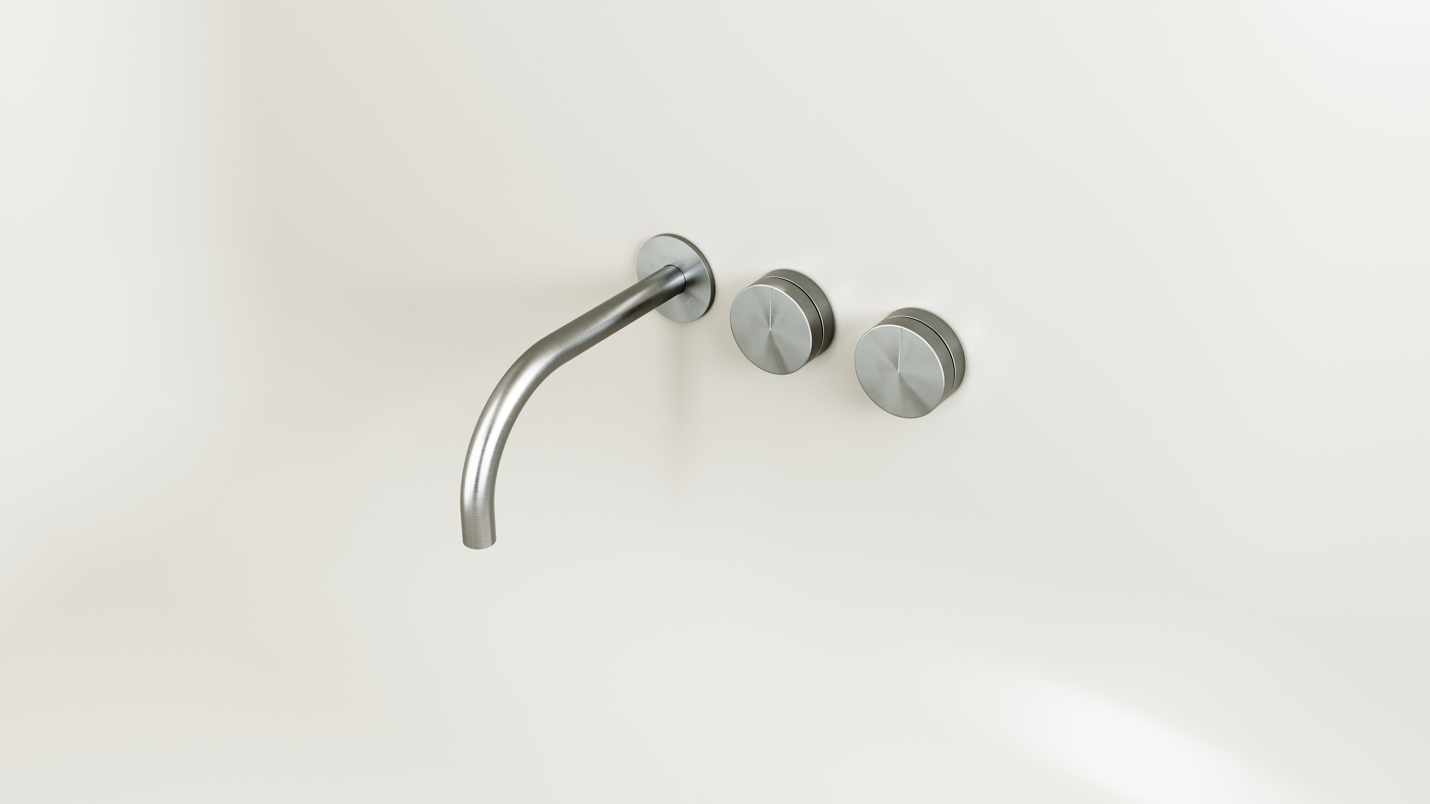 These wall-mounted basin valves with spout (available in 150mm, 200mm, 250mm) are crafted from AISI 316L stainless steel and is available in Brushed Inox.